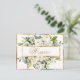 Elegant cream and ivory flowers surrounded with lovely lush greenery. Typography on front of “Wedding”. The back is featured with names of bride and groom and monogram in grey. Gold trim finishes this beauty off with elegance at its best. Just beautiful. Budget postcard.