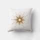 Modern throw pillow features a simple starburst design in a gold and white colour palette. A gold starburst medallion is the central focal point. One design of a coordinating collection.