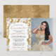 Gold White Sparkle Photo Quinceañera Balloon Invitation