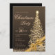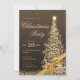 Elegant Winter Xmas Dinner Party Invitation template with Gold Christmas tree with bow and lights. Impress your friends with this sophisticated and modern invitation design.