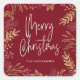 Gold Winter Greenery on Dark Red Christmas Square Sticker