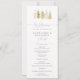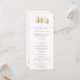 A few sketches of winter trees topped with stars (Christmas, or simply holidays), layered digitally with gold, decorate this elegant, black and white and gold, simple, classy and modern wedding ceremony program that is perfect for a winter wedding, around or on Christmas or any time during the holidays. It features modern, elegant script calligraphy with ample flourishes. Luxurious but simple, classic but chic, modern but timeless. A lovely choice for a couple getting married in the cold months of November, December and January and who likes the aesthetic of black and white art for the wedding stationery, black and white and foil, botanical elegance and winter trees.