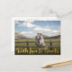 Gorgeous faux gold foil elegant script lettering on the front of this designer postcard which you can upload into with your own engagement/wedding photo portrait. Easily and quickly personalise this designer professionally printed thank you postcard here and now by just typing over the example text and adding your own photograph. Click on the small example photo thumbnail to upload your own image from your hard drive or phone/tablet. Elegant, chic, simple and classy gold script/cursive typography.