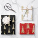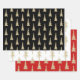 Gold Woodland Spruce Trees Black White Holiday Red Wrapping Paper Sheet