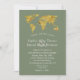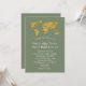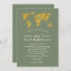 YOU CAN MOVE THE HEARTS AND AIRPLANE TO FIT YOUR DESTINATION EVENT! If you need help contact me. Destination Wedding Travel Watercolor World Map card design! It features faux gold world map, two red hearts, an airplane, on a sage green background. It is perfect for the wedding of any couple who loves to travel, or anyone having a destination wedding. Use Personalize tool to add your info, change fonts, font colour. For more, visit my Destination Wedding Travel World Map collection.