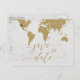 Gold Foil World Map Destination Wedding Save the Date Post Cards with MOVEABLE HEART LOCATION just click the customise further link to position your heart Check my shop to see the entire wedding collection with this design!