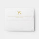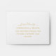 Elegant gold world map response or rsvp envelope with printed mailing address and aeroplane design. Fonts and text colour can be changed to match your destination wedding, beach wedding, travel, journey or "around the world" theme party invitations and save the dates. Gold is a printed effect, not real foil. Visit the Custom Paper Works Zazzle designer shop for coordinating items and more sizes and colour variations.