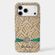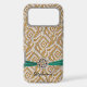 Gold Damask iPhone X Case with Stylised Faux Hot Pink Ribbon and F aux Rhinestones
