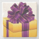 Gold Wrapped Gift Purple Ribbon Christmas Stone Coaster
