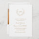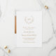 Elegant wedding save the date featuring a clean and timeless design with your monogram inside of a wreath crest. The back has your favourite photo and a QR Code.