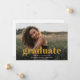 Make a statement with this Modern Gold Yellow Bold Typography Three Photo Graduation Announcement . Featuring striking lowercase typography and a clean, contemporary layout, this design beautifully highlights three favorite senior portraits. The front showcases a bold “graduate” headline, while the back offers space for additional photos and personalized details. Perfect for sharing your milestone with family and friends in a stylish, modern way.