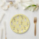 A Tini One Is One The Way Golden Yellow Bow Martini Baby Shower Paper Plates - Adorable paper plates for a gender neutral baby shower. Featuring watercolor illustrations of dirty martinis with two olives and a coquette gold yellow bow and a baby bottles in a random pattern design on a light yellow background. Perfect for a martini themed baby shower or cocktail themed baby shower.
