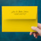 © Socialite Designs. Add a touch of timeless elegance to your wedding stationery or correspondence with this customisable golden yellow envelope. Featuring a vibrant gold tone and a classic design, the envelope includes a customisable return address printed gracefully on the back flap. Perfect for weddings, bridal showers, baby announcements, or any stylish event that deserves attention to detail. Whether you're sending heartfelt letters or formal invitations, this envelope elevates your message with warmth and sophistication.
