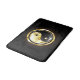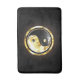 Jewellery, gold and black yin yang symbol on a black background. Gold yin yang.