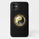 Jewellery, gold and black yin yang symbol on a black background. Gold yin yang.