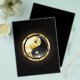 Jewellery, gold and black yin yang symbol on a black background. Gold yin yang.