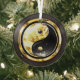 Jewellery, gold and black yin yang symbol on a black background. Gold yin yang.