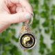 Jewellery, gold and black yin yang symbol on a black background. Gold yin yang.