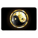 Jewellery, gold and black yin yang symbol on a black background. Gold yin yang.