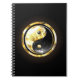 Jewellery, gold and black yin yang symbol on a black background. Gold yin yang.