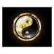 Jewellery, gold and black yin yang symbol on a black background. Gold yin yang.