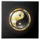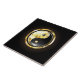 Jewellery, gold and black yin yang symbol on a black background. Gold yin yang.