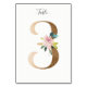 Golden number with soft pastel floral embelishment table number card. Personalise text font style, size, and colour.