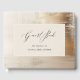 This gorgeous, modern wedding guest book features elegant abstract faux gold accents and neutral beige, plus classic calligraphy.