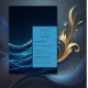 This wedding invitation captures the dynamic elegance of abstract ocean waves in rich shades of deep blue, accented with delicate golden highlights. The flowing, wave-like patterns evoke a sense of movement and depth, blending a serene marine aesthetic with luxurious gold details. Ideal for themes inspired by the ocean, night skies, or elegant contemporary artistry, this piece radiates sophistication and tranquillity. Perfect for those who appreciate refined and nature-inspired designs with a touch of opulence.