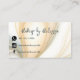 Inspired by precious agate stone, this gilded marble business card captures cool-toned elegance threaded with shimmering gold. The front features a dramatic fractal pattern of soft grey and creamy beige, punctuated by dynamic streaks of glittering gold. Your name is in a personal yet polished script, with your title subtly understated. The reverse side maintains this luxurious feel with clear icons for your phone number, Instagram, and Facebook, making it effortless for new clients to connect. It’s the perfect card for any professional who wants to leave a lasting impression of modern elegance and artistic flair.
