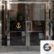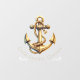 Gold rope wraps around a gold toned anchor on this pinstriped navy blue background. Text is customizable.