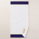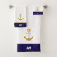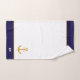 Golden anchor & monogram on navy blue & white bath towel set