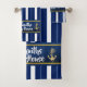 Golden Anchor on Blue Stripes Nautical Bath Towel Set