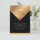 Black background with a gold triangle at the top and gold glitter at the bottom. A red gem in the middle