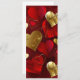 Vertical composition of red and gold, textured valentines made of foil and brocade on red background. Valentines day decorations.