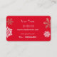 golden and white snowflakes against red business card