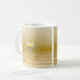 Coffee mug with my image of two dolphins and a golden heart on shining waters. Customisable text says "50 Years".