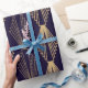 Golden art Deco Pattern. Seamless dark blue backgr Wrapping Paper