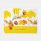 Beautiful and stylish design with autumn leaves in orange and golden yellow colours, wheat straws and acorns pattern, and a golden yellow bottom with a fully customisable autumn magic base line.