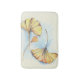 A trio of ginkgo biloba leaves in fall hues of yellow, gold and orange on a cream coloured background is featured in this design created in soft pastel.