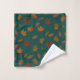 Design of autumn leaves coloured in various shades of orange. The washing cloth has one layer with small leaves, while the two towels have one extra layer with bigger leaves, giving a decorative depth.