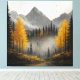 Capture the tranquil beauty of nature with this stunning artwork featuring golden autumn trees reflected in a still mountain lake. Towering pine trees and dramatic grey mountains frame the scene, creating a breathtaking contrast of warm and cool tones. Perfect for lovers of fall landscapes, wilderness adventures, and serene outdoor vibes.