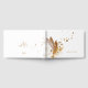Golden leaves and leaf outlines splashed with gold dust are the focal point for this beautiful wedding guest book. The typewritten font style in all lower-case and modern layout makes this an eye-catching design.