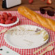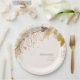 An arrangement of autumn leaves and berries in shades of gold and burgundy splashed with gold dust is the focal point for this beautiful paper plate. The lower-case, typewritten font and modern layout make this an eye-catching addition to your wedding table. Easily add your names, personal 'thank you' message and wedding date using the provided template.