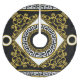 Baroque elegance, golden elements on black for a regal feel.