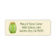 Golden Barrel watercolor painting on a set of return address labels. Latin name echinocactus grusonii.