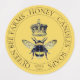 Golden bee apiary with bee and crown vinyl water proof durable labels; an essential item for labelling artisan maker products from honey and beeswax. Label bottles, packages, paper items and more, to carry your brand. Suitable for makers selling honey, beeswax candles, soaps, lip balm, body butter and moisturizer to name a few. Put on products and packaging. To see the full collection of products for this design: https://www.zazzle.com/collections/golden_bee_apiary_honey_products-119141405397873975