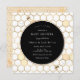 Bee-themed gold baby shower invitation featuring a gold honeycomb pattern and buzzing bees. Personalise with your information or click "Click to customise further" to edit font styles, size and colours.