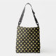 Golden Beige Four-Pointed Star Pattern on Black Crossbody Bag