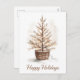 Golden Bell Holly Red Stripe Christmas Holiday Postcard